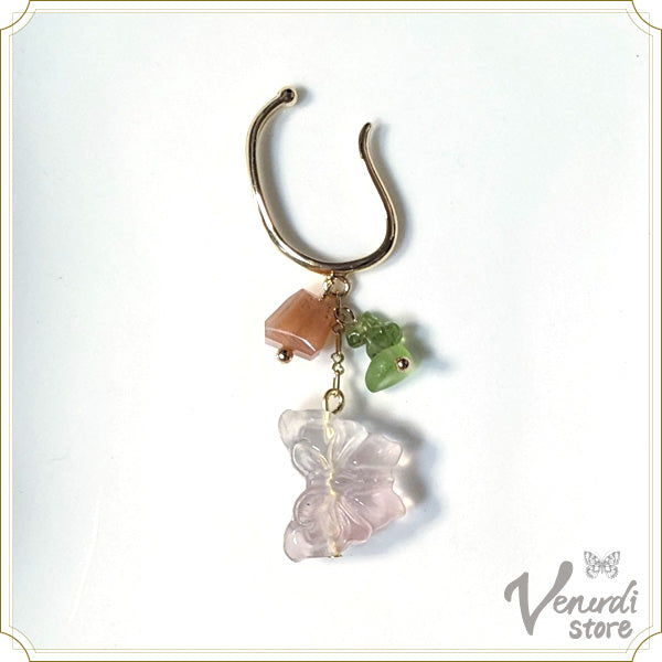 美しいクリアのフローライトの蝶々イヤーカフ。