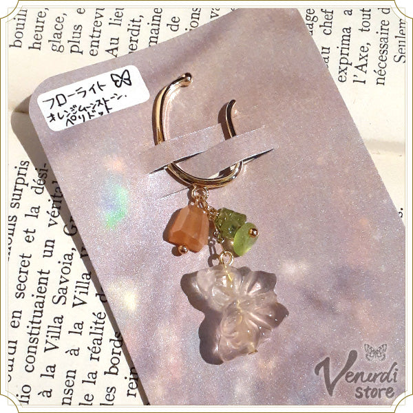 アクセサリーデザイナー「SLOTHTONE」様のフローライトとオレンジムーンストーンのイヤーカフです。