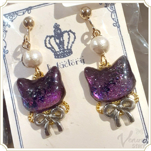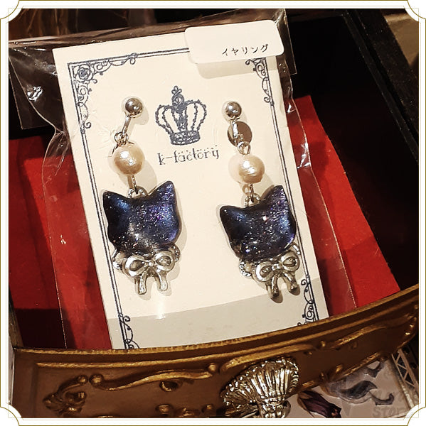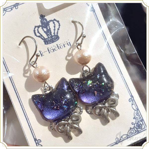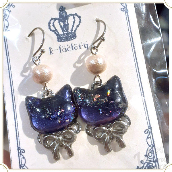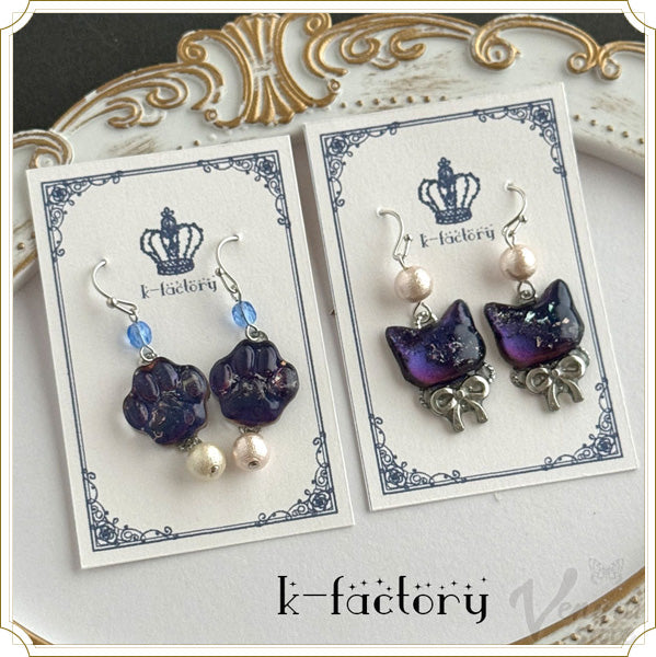 「k-factory」様の宙色猫の耳飾り(イヤリング・ピアス・猫・肉球)です。