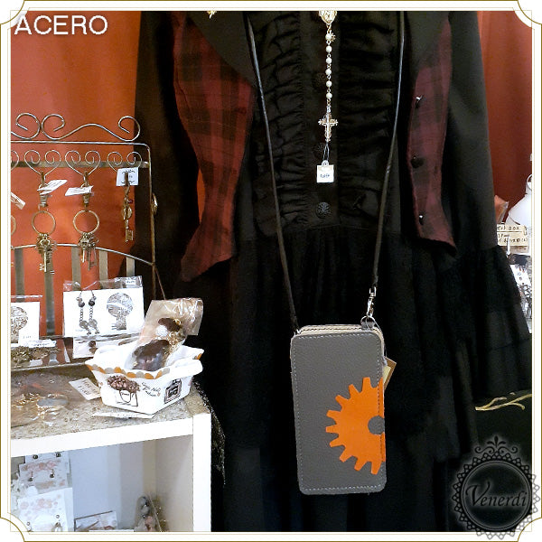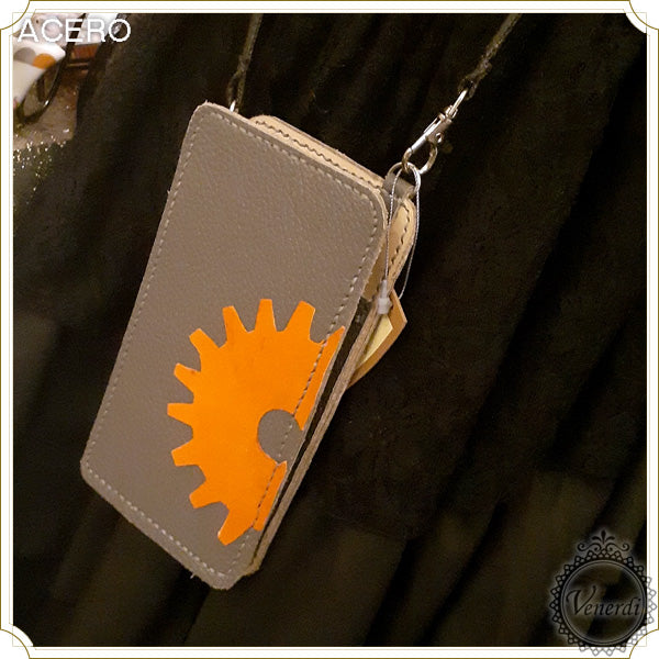 レザー作家「acero」様の歯車スマホポシェット。