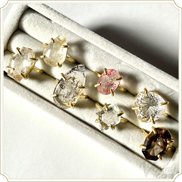 多角カット・ドロップローズカット ルチルクォーツ/ドロップスライスカット デンドリティッククォーツ/オーバルカット ストロベリークォーツ/多角カットクリスタルクォーツ・スモーキークォーツ/レーザートライアングルカットクリスタルクォーツ リング